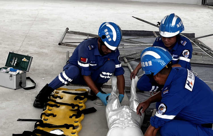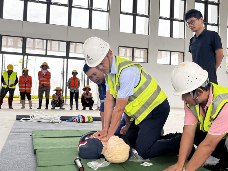 上午9時(shí)許,演練正式開始。項(xiàng)目一“工人”被塌落的操作架架體及建筑材料砸傷,腿部骨折并伴隨大量出血。接到事故報(bào)告后,項(xiàng)目部立即啟動應(yīng)急預(yù)案、進(jìn)行救援處置,信息報(bào)送、救助聯(lián)絡(luò)、人員疏散、安保警戒、醫(yī)療救護(hù),各小組在總指揮的統(tǒng)一調(diào)度下迅速展開救援行動,分工明確、配合默契、有條不紊,最終成功救助傷者,維護(hù)了項(xiàng)目現(xiàn)場的穩(wěn)定?;顒犹貏e邀請了海藍(lán)應(yīng)急救援服務(wù)中心救助隊(duì)參與,過程中,海藍(lán)應(yīng)急救援服務(wù)中心專家針對簡易擔(dān)架制作、心肺復(fù)蘇技能進(jìn)行了演示,并組織項(xiàng)目人員親身體驗(yàn)。整場演練共歷時(shí)40多分鐘,順利完成了計(jì)劃內(nèi)容,達(dá)到了“以演促練”的預(yù)期效果,不僅強(qiáng)化了全體參與人員對安全工作的認(rèn)識,使大家熟悉了處置突發(fā)事件的流程,學(xué)習(xí)了自救互救知識和技能,還提升了項(xiàng)目部應(yīng)急救援水平,能夠最大程度地減少或避免意外傷害事故造成的損失,有利于扎實(shí)推進(jìn)后續(xù)安全生產(chǎn)工作。