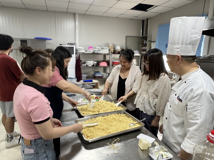 活動現(xiàn)場,工作人員為參與活動的職工分發(fā)了制作綠豆糕的食材,模具。在大廚的詳細(xì)講解下,紛紛上手開始制作,揉綠豆團(tuán),壓模,分裝,經(jīng)過大家的一番努力,一枚枚香甜可口的綠豆糕擺上了桌面,大家成就感油然而生,活動也在歡聲笑中落下帷幕,制作完成的綠豆糕將在端午節(jié)當(dāng)天分發(fā)到每一位職工手上。