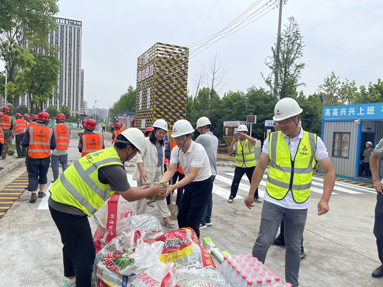 胡浩一行為高溫天氣堅(jiān)守崗位的項(xiàng)目一線職工帶來(lái)了防暑降溫的純凈水、西瓜、綠豆、十滴水等清涼食品和防暑藥品,送去了關(guān)懷和問(wèn)候,并叮囑項(xiàng)目部要合理安排作業(yè)時(shí)間,確保一線職工健康,切實(shí)做到防暑降溫工作和安全生產(chǎn)工作兩不誤。