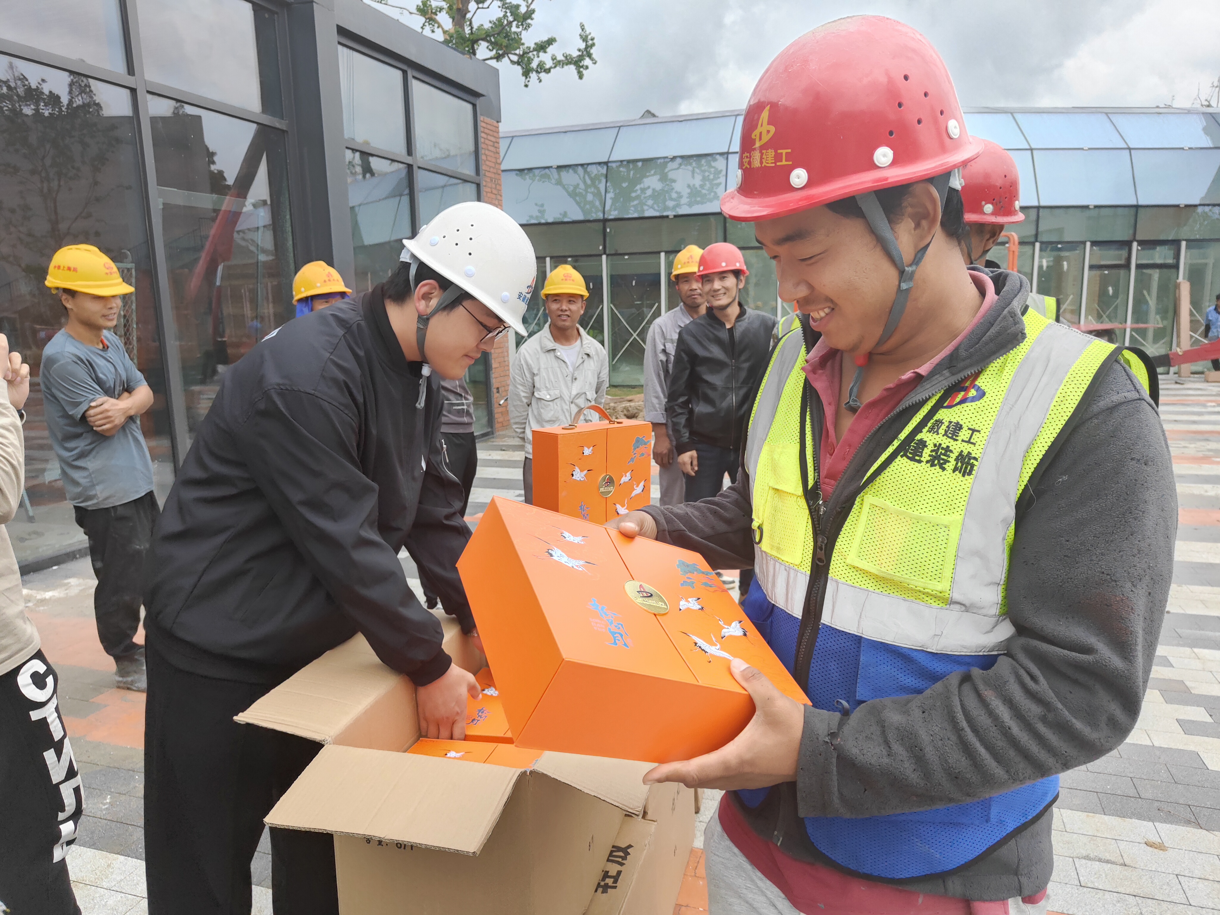 金風(fēng)送爽,中秋月圓。正值丹桂飄香的中秋佳節(jié)總是能牽動職工們思鄉(xiāng)的心弦。9月29日上午,裝飾公司各項目為建筑工人們送上中秋月餅和中秋祝福。