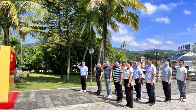 活動(dòng)第一站來(lái)到了海南省定安縣母瑞山革命根據(jù)地紀(jì)念園。在王文明、馮白駒將軍銅像前,全體人員肅穆而立,靜默哀思,莊重地向革命先烈三鞠躬,表達(dá)了崇高敬意和無(wú)限追思。隨后,黨員們面對(duì)黨旗重溫入黨誓詞,回憶入黨初心,在錚錚誓言中堅(jiān)定共產(chǎn)黨員的政治信念和價(jià)值追求。在講解員的帶領(lǐng)下,大家還參觀了瓊崖革命斗爭(zhēng)歷史館,共同追憶瓊崖革命“二十三年紅旗不倒”的光輝歷史和革命先烈的英雄事跡,不僅加深了對(duì)母瑞山革命斗爭(zhēng)的了解,也進(jìn)一步堅(jiān)定了不懼困難、不懈奮進(jìn)、奮發(fā)圖強(qiáng)的信念。