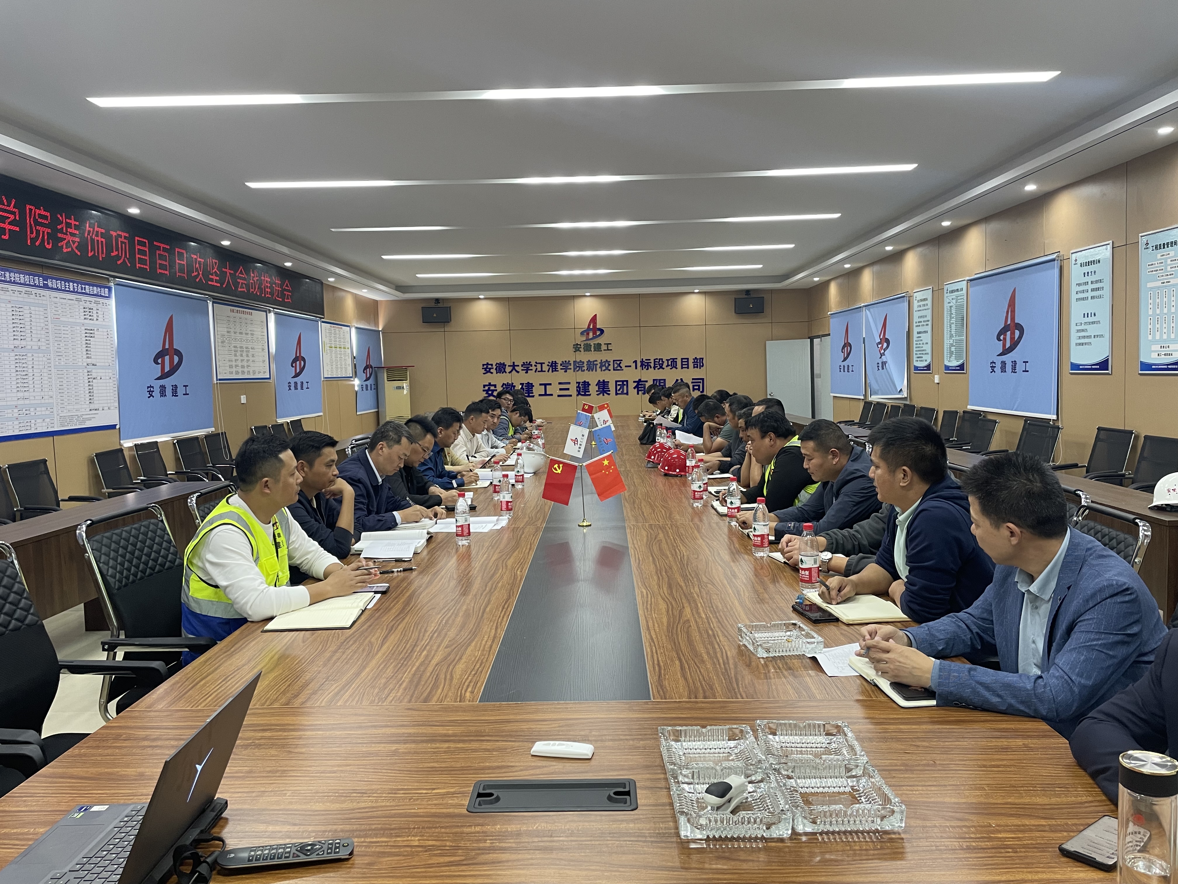 為保證工程質(zhì)量,搶抓工期節(jié)點,10月22日下午,裝飾公司合肥理工學(xué)院項目舉行“百日攻堅”勞動競賽動員大會。裝飾公司領(lǐng)導(dǎo)班子、項目全體管理人員、勞務(wù)班組及供應(yīng)商共30余人參會。