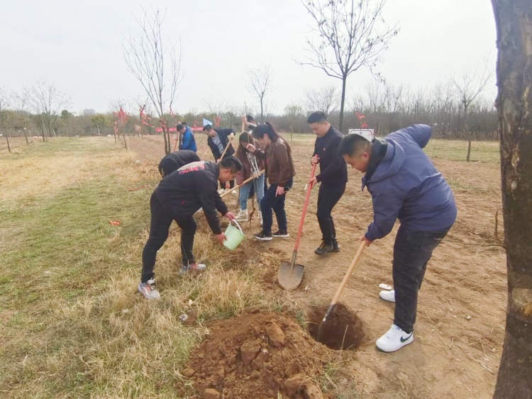 植樹現(xiàn)場(chǎng),黨員和青年志愿者們分工協(xié)作、配合默契,揮鍬鏟土、踩實(shí)新泥,大家熱情高漲,干勁十足,現(xiàn)場(chǎng)一片繁忙有序,熱火朝天的景象。