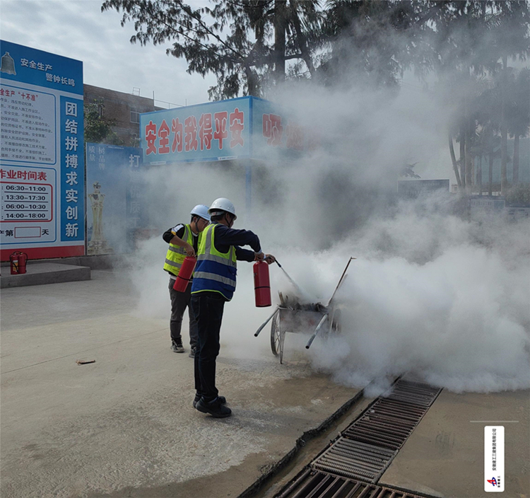 首先開展的是消防應(yīng)急演練活動(dòng),從消防器材的介紹及使用、滅火方法及注意事項(xiàng)、火險(xiǎn)隱患、應(yīng)急自救常識(shí)等方面進(jìn)行了詳細(xì)講解,為了將所學(xué)知識(shí)付諸實(shí)踐,項(xiàng)目“趁熱打鐵”組織現(xiàn)場(chǎng)工作人員舉行了干粉滅火器滅火演練,主要強(qiáng)調(diào)了干粉滅火器的使用技巧和注意事項(xiàng)。