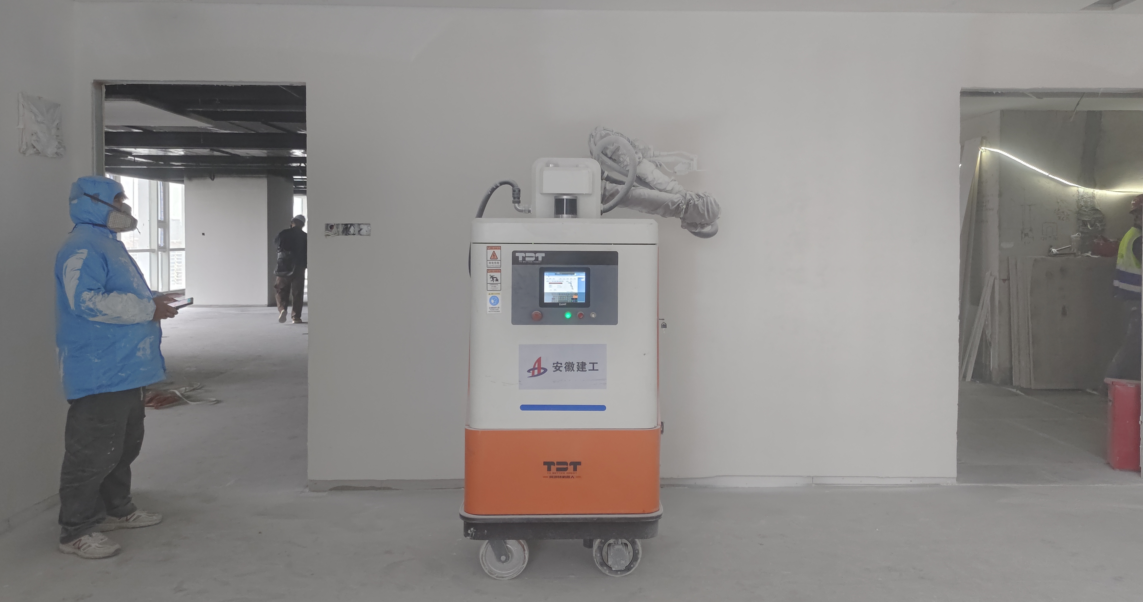 在最后沖刺階段,項目團隊引入噴涂機器人參與室內(nèi)噴涂作業(yè),制定人機協(xié)同施工管理方案,針對室內(nèi)墻面、天花板等噴涂難點,充分發(fā)揮機器人作業(yè)噴點均勻、壓力穩(wěn)定、節(jié)省耗漆量等優(yōu)勢,同時智能無人操作避免了高空作業(yè)危險,縮短了工期,極大地提升了噴涂作業(yè)施工效率與質(zhì)量,為項目的圓滿完成提供了堅實的技術(shù)保障。
