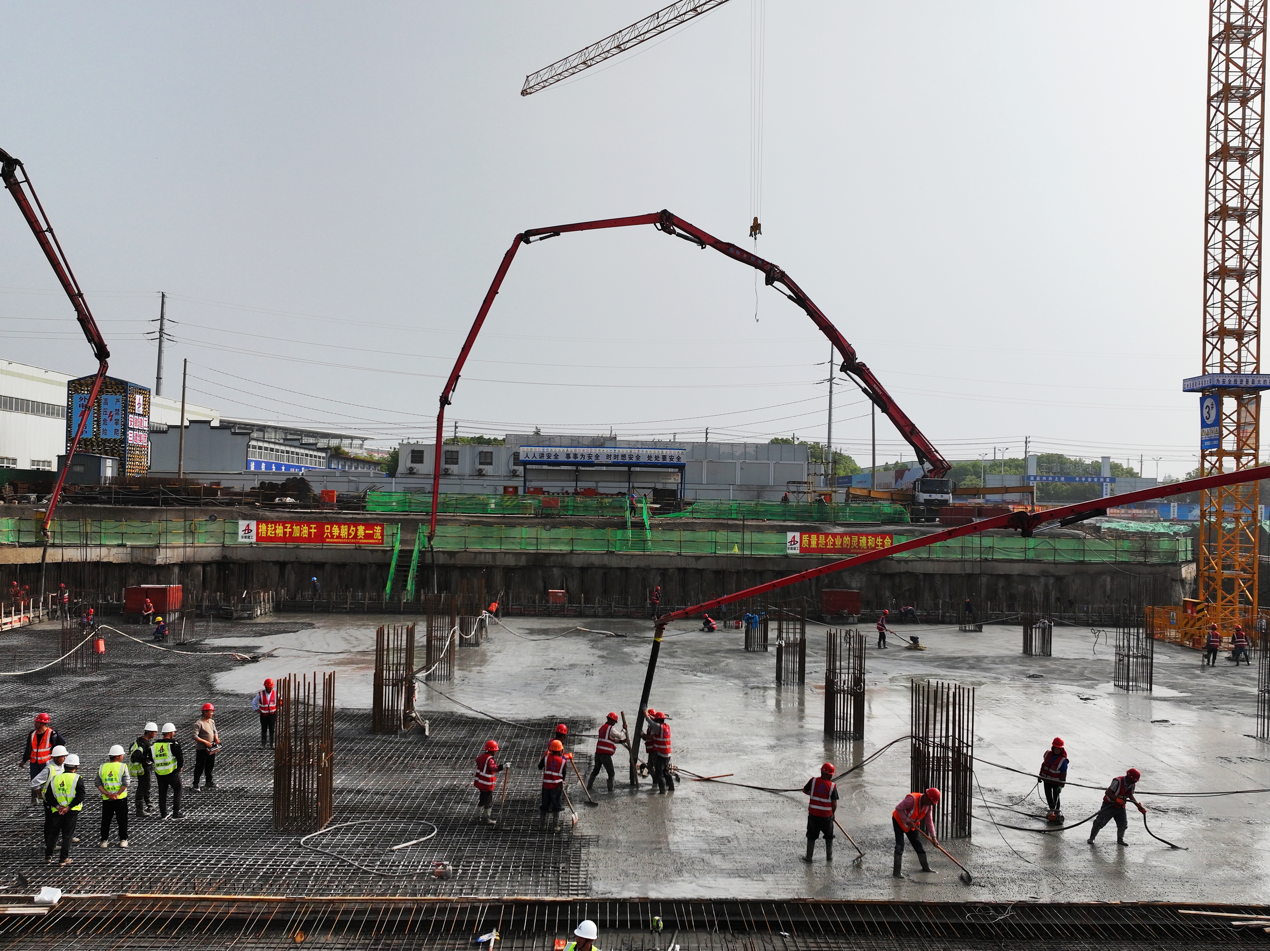 4月15日13點,蕪湖汽車電子產(chǎn)業(yè)園項目順利完成3#樓西北角第一塊筏板澆筑作業(yè),標志著項目建設取得新進展。本次澆筑面積約2600平方米,澆筑混凝土方量約3300立方米,歷時25小時。