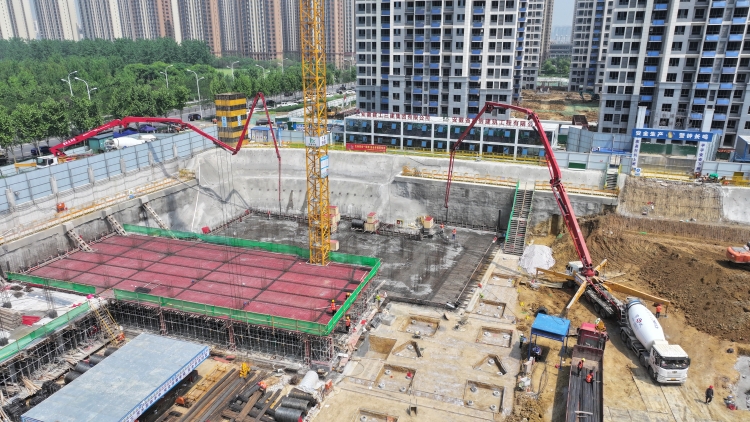 項目200多名建設(shè)者開足馬力全面推進工程建設(shè),兩層地下室以9天一層的速度向前推進。項目團隊根據(jù)工期節(jié)點制定勞動力、機械設(shè)備、周轉(zhuǎn)材料等投入計劃,不斷優(yōu)化施工方案,合理配置資源,積極主動與多方溝通,保障工序銜接,并對班組人員做好技術(shù)質(zhì)量交底,加大施工安全制度落實、重點部位監(jiān)控設(shè)備、人員值守等方面的檢查力度,以“滿格”狀態(tài)拉滿施工“進度條”。截至目前,項目地下室封頂已達50%,累計完成產(chǎn)值2641.40萬元。