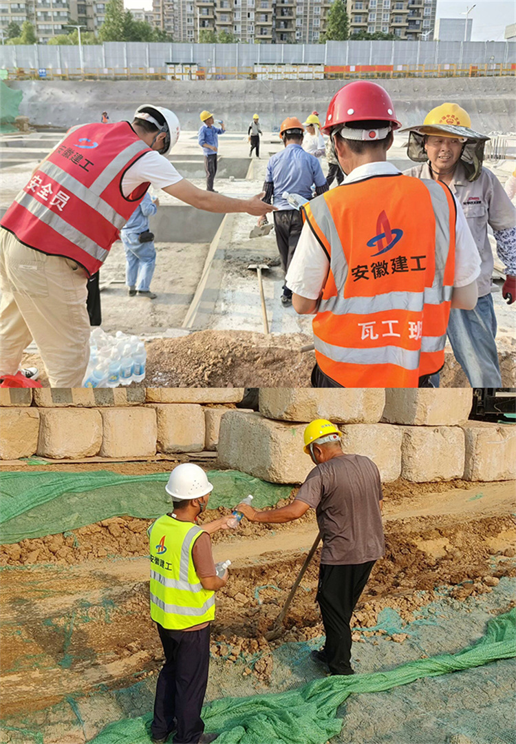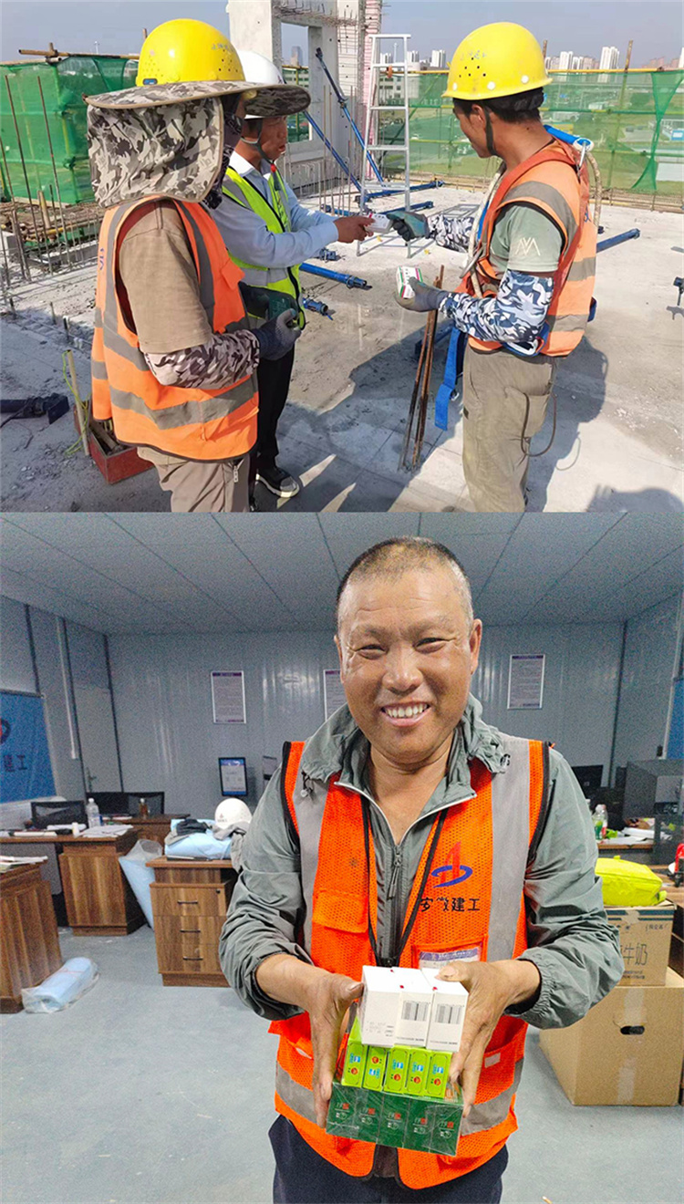 為切實保護廣大工友身體健康,保障項目施工進度,各項目部采取調整作業(yè)時間,避免高溫時間作業(yè),為操作工人發(fā)放仁丹、藿香正氣水、鹽汽水、冰棒等防暑降溫物品,準備臨時納涼房等防暑降溫措施,以實際行動, 為建設者撐起生命安全的“清涼傘”。
