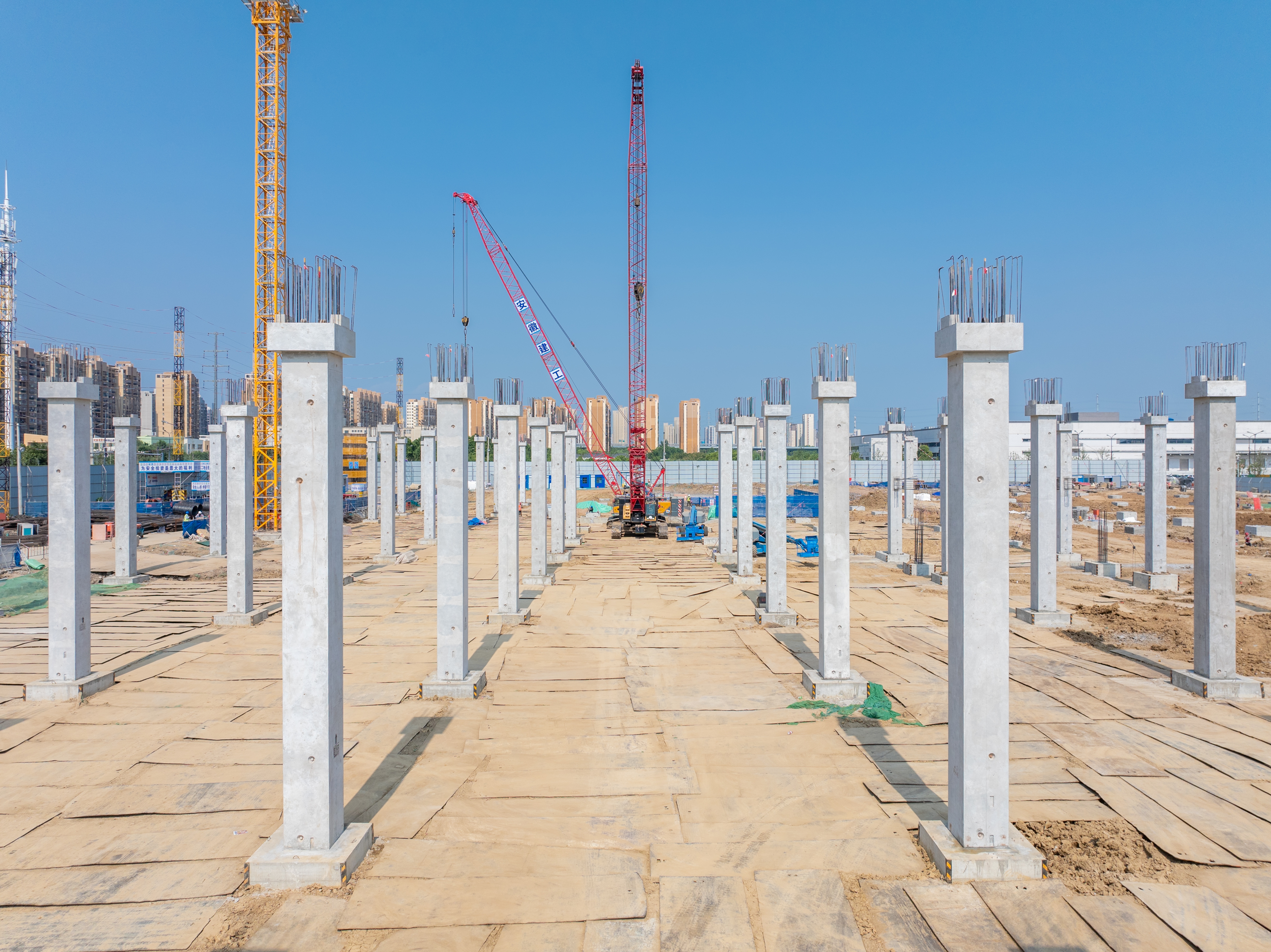 臨湖智能制造產(chǎn)業(yè)園項(xiàng)目工期緊、任務(wù)重、質(zhì)量要求高,在項(xiàng)目前期策劃中,工程技術(shù)人員制定了詳細(xì)的施工方案和安全專項(xiàng)方案,明確施工工序、施工方法和質(zhì)量控制要點(diǎn)。特別是針對(duì)車間二、車間四高達(dá)20多米的獨(dú)立柱施工難題,項(xiàng)目部多次組織鋼構(gòu)、架業(yè)、機(jī)電等多家單位召開(kāi)技術(shù)攻關(guān)會(huì),探討和論證現(xiàn)場(chǎng)土方開(kāi)挖、樁基施工以及承臺(tái)開(kāi)挖等環(huán)節(jié)的最優(yōu)施工工序。