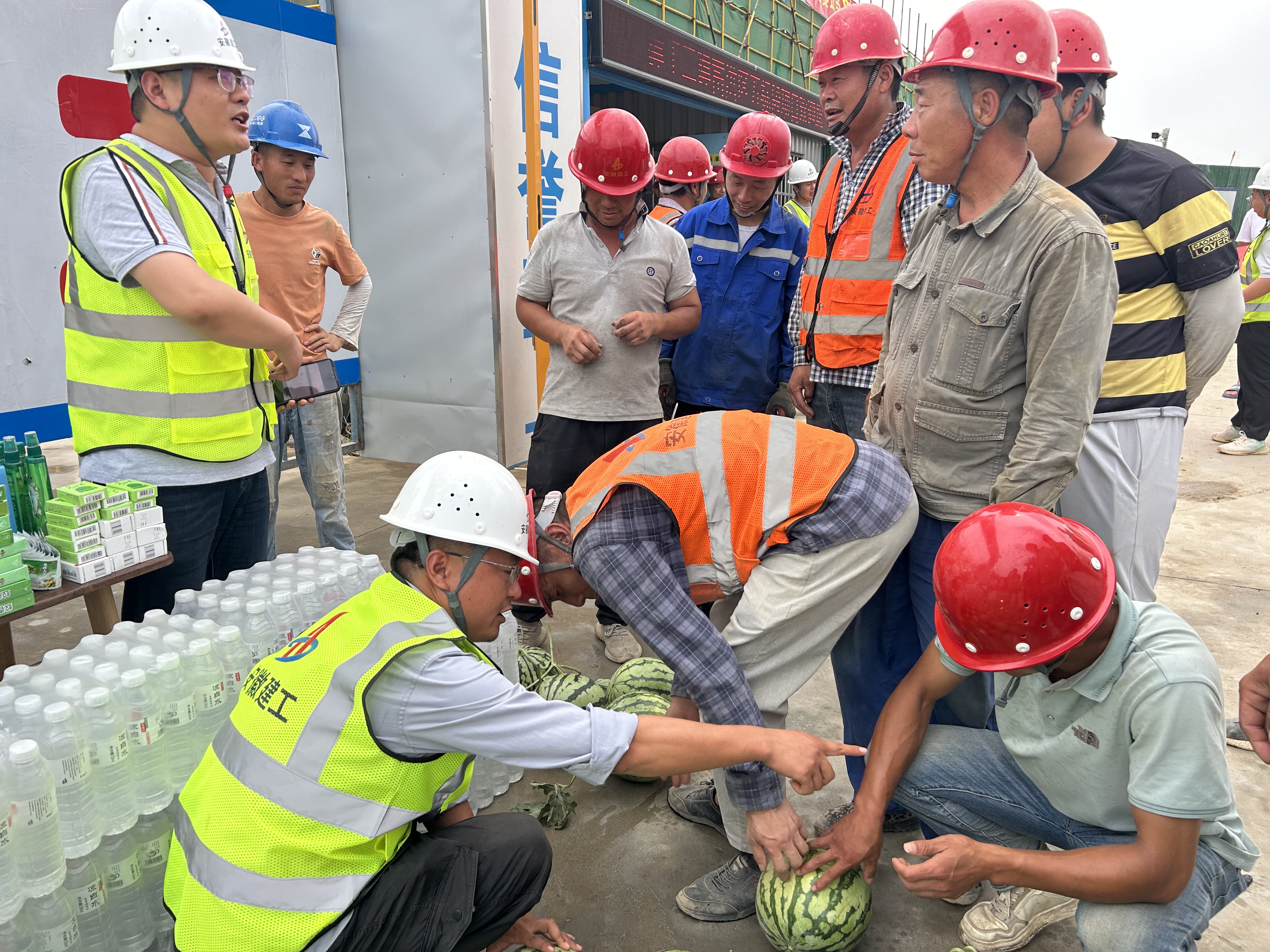今年入夏以來(lái),項(xiàng)目部為切實(shí)增強(qiáng)一線工人的獲得感、幸福感、安全感,始終牽掛和關(guān)心著一線工人的身體健康,先后通過(guò)調(diào)整作息時(shí)間、合理安排施工工序、配備專兼職安全管理人員時(shí)刻關(guān)注防暑降溫及健康管理工作,全面摸排不安全因素,高質(zhì)量開(kāi)展各項(xiàng)安全生產(chǎn)工作。此次慰問(wèn)活動(dòng),不僅為一線工人們送去了清涼和關(guān)懷,更增強(qiáng)了職工的凝聚力和向心力,激發(fā)了全體人員的工作熱情。在今后的工作中,項(xiàng)目部將繼續(xù)秉持以人為本的理念,不斷創(chuàng)新管理方式,持續(xù)開(kāi)展提升一線工人的生活品質(zhì)工作,努力營(yíng)造更加和諧、安全的工作環(huán)境,讓全體職工以飽滿的熱情和更加堅(jiān)定的信心爭(zhēng)創(chuàng)高產(chǎn),高標(biāo)準(zhǔn)、高質(zhì)量實(shí)現(xiàn)各項(xiàng)合同目標(biāo),為霍邱縣行蓄洪區(qū)安置點(diǎn)居民的美好生活貢獻(xiàn)力量。