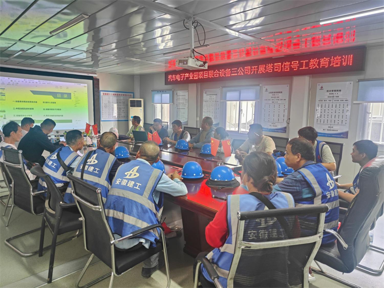 隨后,活動(dòng)人員前往項(xiàng)目部會(huì)議室,開(kāi)展專(zhuān)項(xiàng)教育培訓(xùn)工作。培訓(xùn)通過(guò)理論加實(shí)踐、現(xiàn)場(chǎng)加圖文等形式,結(jié)合演練開(kāi)展情況,對(duì)塔司及信號(hào)的工作業(yè)要求和注意要點(diǎn)、項(xiàng)目部對(duì)起重吊裝的管理重心、設(shè)備公司的協(xié)同配合等做出了剖析和要求,使每一位參培人員都收獲頗豐。