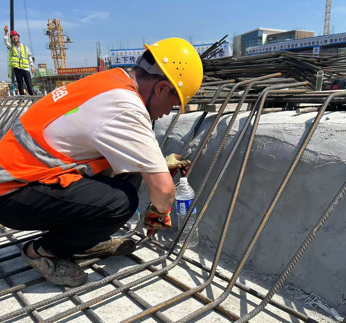 項(xiàng)目建設(shè)現(xiàn)場(chǎng),只見大小挖機(jī)開足馬力,一遍遍地挖土整平場(chǎng)地,工人們忙忙碌碌、揮汗如雨?!袄凼强隙ǖ?,但還是要把工作做好?!闭陧?xiàng)目東南角進(jìn)行鋼筋綁扎工作的鋼筋工人說(shuō)道,他喝了口水,便蹲下身繼續(xù)埋頭麻利地綁扎“燙手”的鋼筋。“雖然每天在滾滾熱浪中工作,好在項(xiàng)目部對(duì)高溫天作業(yè)時(shí)間做了調(diào)整,中午最熱的時(shí)段可以在休息室休息,儲(chǔ)存好充足體力后迎接下午的工作。”其他工友說(shuō)道。在董崗星辰苑項(xiàng)目現(xiàn)場(chǎng),目前共有300余名建筑工人夜以繼日地奮戰(zhàn)。