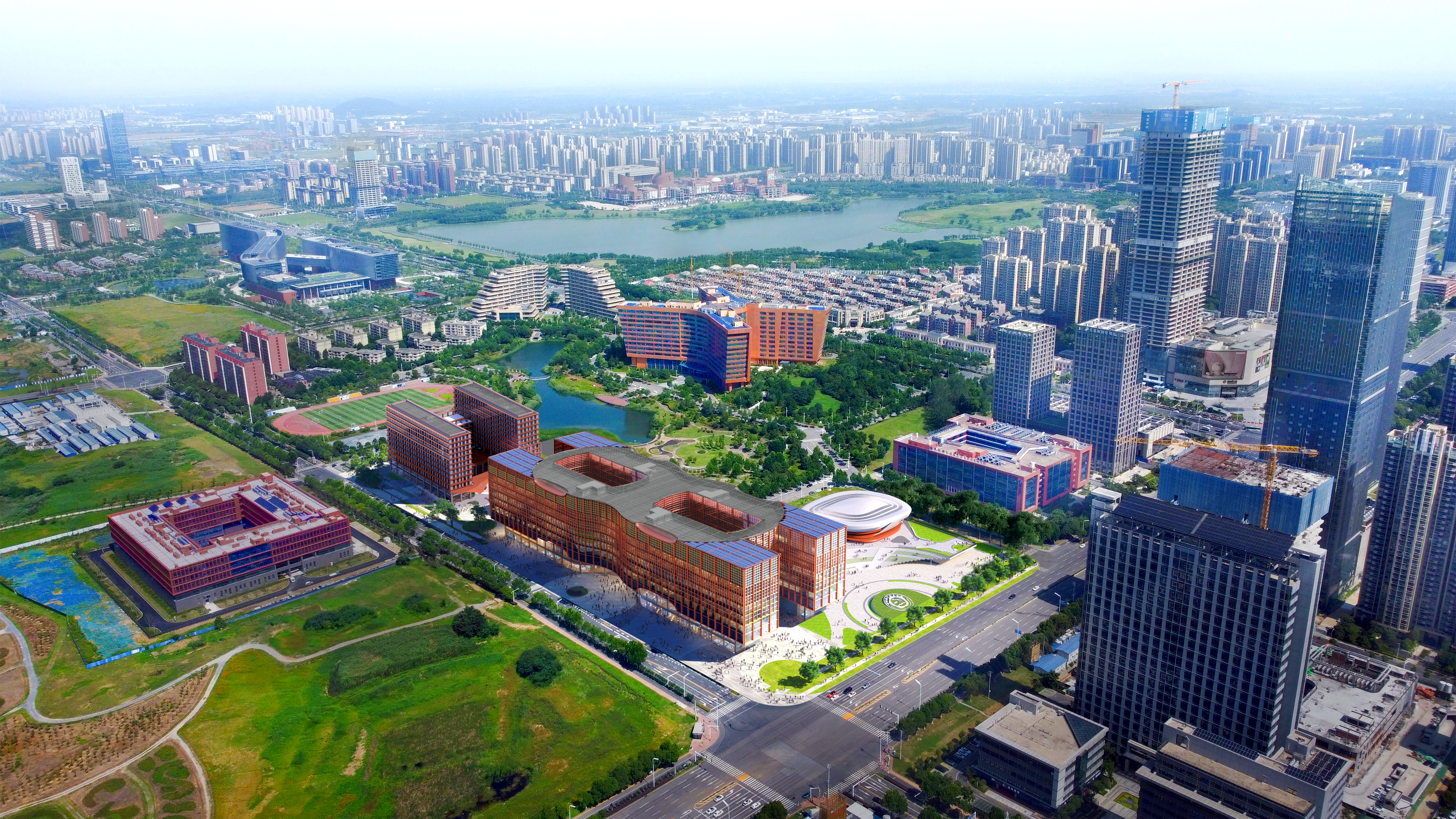 在合肥一中淝河校區(qū)建設(shè)中,充分利用BIM技術(shù)進(jìn)行推演排版深化,通過對(duì)比外立面鋁板顏色、調(diào)整外立面分縫形式等細(xì)節(jié),對(duì)樣板進(jìn)行反復(fù)推敲,切實(shí)使設(shè)計(jì)理念得到充分展現(xiàn)。同時(shí),為給師生創(chuàng)造安全、舒適、環(huán)保的學(xué)習(xí)工作環(huán)境,校區(qū)在建設(shè)過程中采用了一系列先進(jìn)的環(huán)保技術(shù)和設(shè)備。如教室照明方面,每間教室天花板均配備12盞超大的LED健康護(hù)眼燈,燈光接近自然光,在光照度、均勻度、頻閃、眩目值等方面均有充足保障,有效呵護(hù)學(xué)生視力健康。在內(nèi)裝飾完成后,進(jìn)行第一次環(huán)保檢測(cè),待課桌椅進(jìn)場(chǎng)后再進(jìn)行第二次環(huán)保檢測(cè),通過多次檢測(cè)確保環(huán)境質(zhì)量達(dá)標(biāo),讓師生安心學(xué)習(xí)和工作。此外,校區(qū)還建設(shè)了一條長達(dá)1150米的風(fēng)雨連廊,連接全部14棟地上單體,方便學(xué)生在惡劣天氣下往返于各建筑群之間,體現(xiàn)了人性化的設(shè)計(jì)理念。