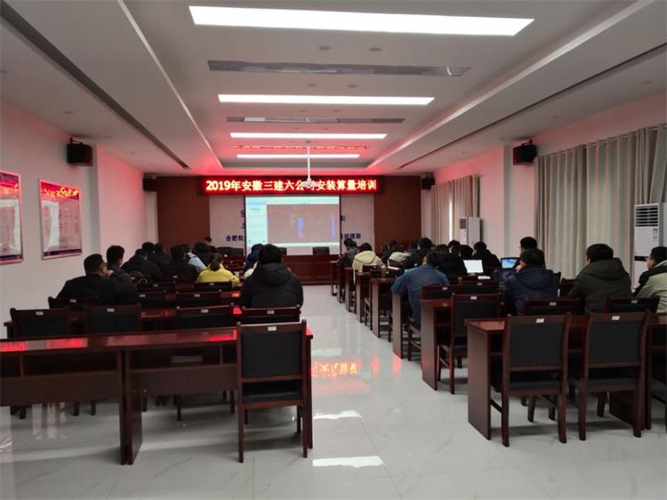2019年1月5日星期六上午,六公司在公司合肥軌道交通4號線4標項目會議室舉辦了2019年的第一場內部培訓,也是安裝算量培訓,分公司領導班子、項目經理、核算員、技術負責等40人參加了培訓。