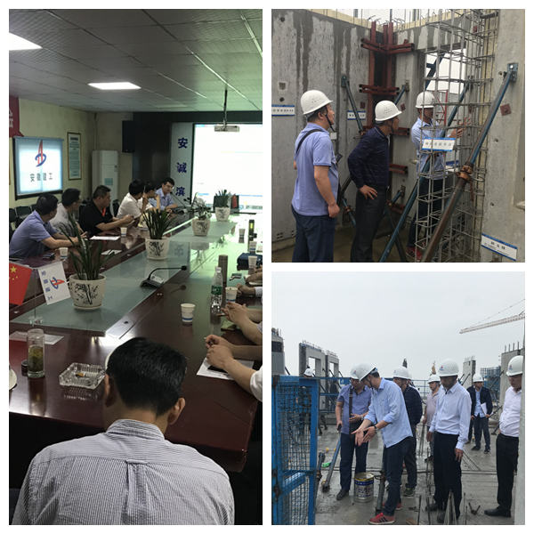 5月15日下午,鳳陽縣城鄉(xiāng)建設(shè)局副局長王興茂帶領(lǐng)城鄉(xiāng)建設(shè)局、重點局相關(guān)人員以及萬?;▓@裝配式項目建設(shè)單位、監(jiān)理單位、構(gòu)件生產(chǎn)單位一行,前往濱湖沁園三標(biāo)段項目觀摩交流。王興茂稱贊:“安徽三建在裝配式工程施工領(lǐng)域,雖然起步晚,但步子邁的快,進(jìn)步巨大”。省建設(shè)工程質(zhì)量安全監(jiān)督總站、合肥市質(zhì)量安全監(jiān)督站相關(guān)負(fù)責(zé)人陪同。