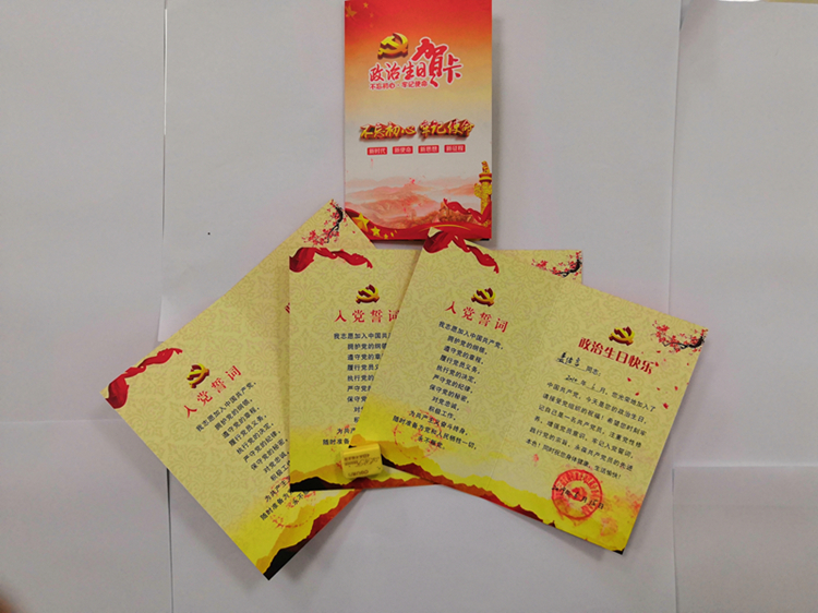 黨課結(jié)束后,黨支部組織幾名黨員同志集體過(guò)政治生日。支部為過(guò)政治生日的黨員精心準(zhǔn)備了賀卡,賀卡在祝賀的同時(shí),提出了要求,讓黨員既感受到了組織的溫暖,又增強(qiáng)了責(zé)任意識(shí)。過(guò)政治生日的黨員還重溫了入黨誓詞,發(fā)表了“政治生日感言”。副經(jīng)理李紅軍激動(dòng)地說(shuō)道:“黨員過(guò)‘政治生日’”不僅是個(gè)特殊的儀式,更是一次心靈的洗禮,很感謝黨組織的多年的培養(yǎng)與關(guān)懷?!?/span>