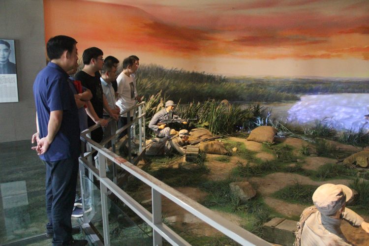 進入紀念館中,首先印入眼簾的便是一幅巨大的新四軍浮雕壁畫,大家對場館內(nèi)五個展廳依次進行了參觀學習。廳內(nèi)大量的歷史圖片、遺留實物、解說文字等以不同形式再現(xiàn)了當年新四軍將士在巖寺的光輝歷程和英勇抗戰(zhàn)事跡。