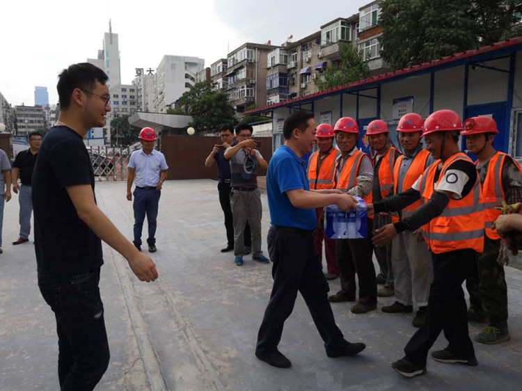校領(lǐng)導(dǎo)為三建合肥三中綜合藝術(shù)樓項(xiàng)目“送清涼”