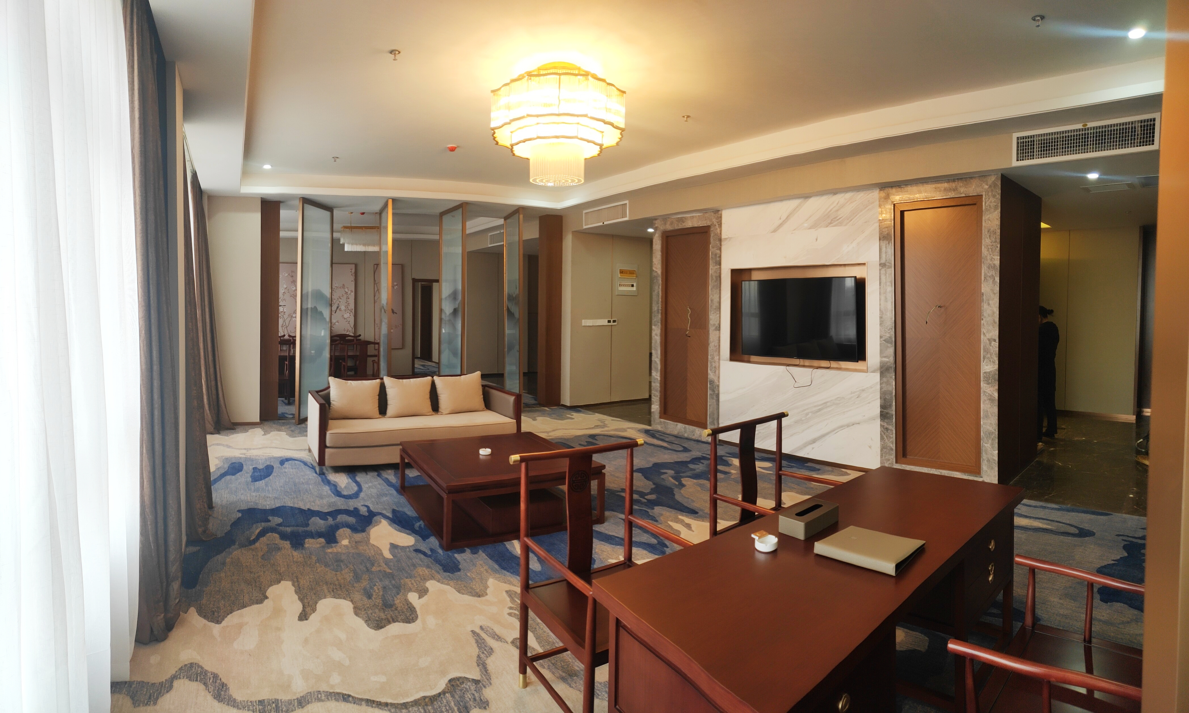 楊長亞一行對酒店大堂、客房、自助餐區(qū)、大會議室、宴會廳等功能區(qū)進行逐層考察并參觀了酒店關(guān)中印象、愛琴之海、現(xiàn)代簡約、輕奢商務(wù)等四種不同裝修風(fēng)格的客房,對酒店的整體設(shè)計和施工質(zhì)量表示贊許,希望此項目能夠作為當(dāng)?shù)鼐频甑臉?biāo)桿項目。