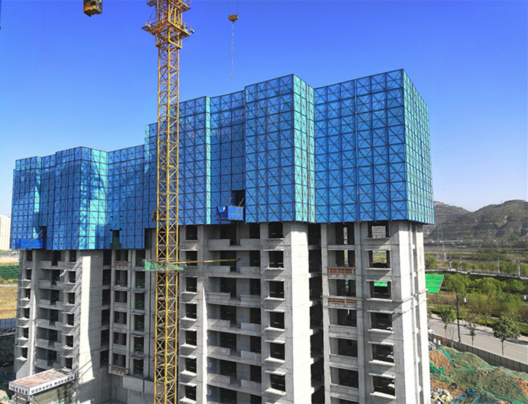 西北公司彬州世紀(jì)城宗地一地塊項目的2棟高層全部采用全鋼型附著式升降腳手架。較普通架體而言,該架體安全性能搞、操作人員少,方便快捷,爬升一層僅需1小時,架體在組裝完成后不需要材料堆碼場地,整個建筑外立面清爽干凈,顯著提高了項目的文明施工,并在使用過程中檢查維護(hù)工作量較小、用時少,從而更大的提高了項目的生產(chǎn)效率。項目部表示在后續(xù)開工的樓體建設(shè)中將繼續(xù)采用該爬架。