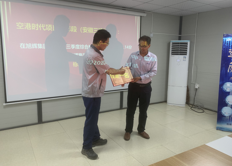 近期,旭輝集團(tuán)2020年第三季度綜合檢查評(píng)比結(jié)果出爐,九公司旭輝·空港時(shí)代·曦園一標(biāo)段項(xiàng)目獲得鄭州地區(qū)第一名。9月18日,旭輝集團(tuán)鄭州事業(yè)部在空港時(shí)代項(xiàng)目部會(huì)議室召開了鄭州地區(qū)評(píng)比總結(jié)會(huì)議,旭輝集團(tuán)鄭州事業(yè)部工程總監(jiān)許成樹在會(huì)上為空港時(shí)代·曦園一標(biāo)段項(xiàng)目部頒發(fā)了榮譽(yù)證書。