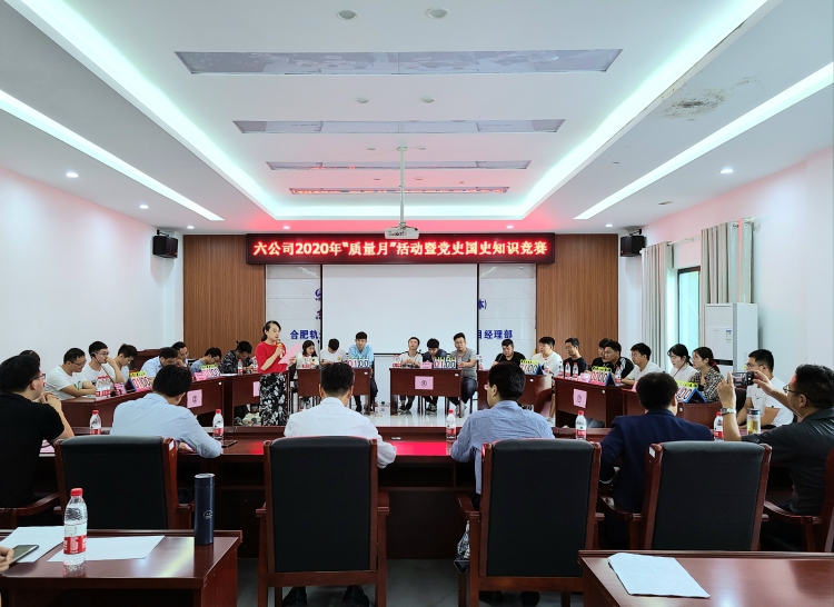 為迎接新中國成立71周年和宣傳貫徹以“建設質量強國 決勝全面小康”為主題的全國第43個“質量月”活動,9月24日下午六公司在合肥市軌道交通4號線4標段項目部組織開展2020年“質量月”知識競賽活動。參加活動的選手和觀眾約60人。
