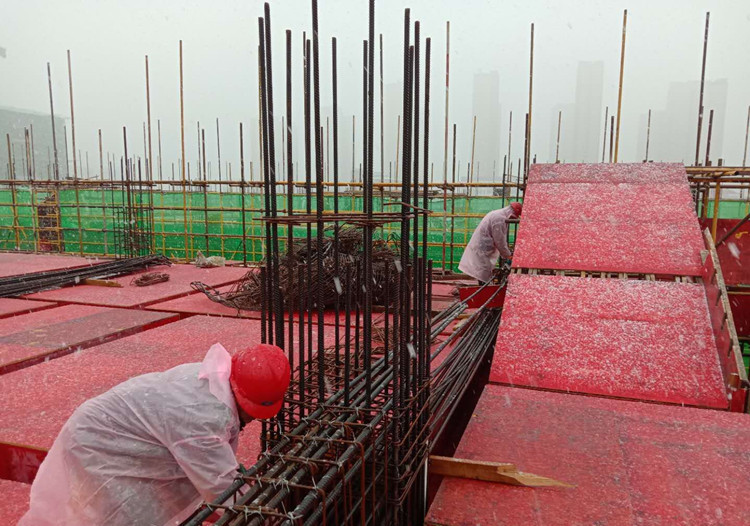 11月23日上午,阜陽臨泉縣首場大雪如期而至,室外細雨夾著白雪、地區(qū)氣溫低至零下1-2度,但臨泉欣榮農(nóng)民返鄉(xiāng)創(chuàng)新創(chuàng)業(yè)基地項目現(xiàn)場卻一派熱火朝天大干搶工場面,項目一線職工奮戰(zhàn)在雪中,為全面完成全年目標任務(wù)奮力拼搏。