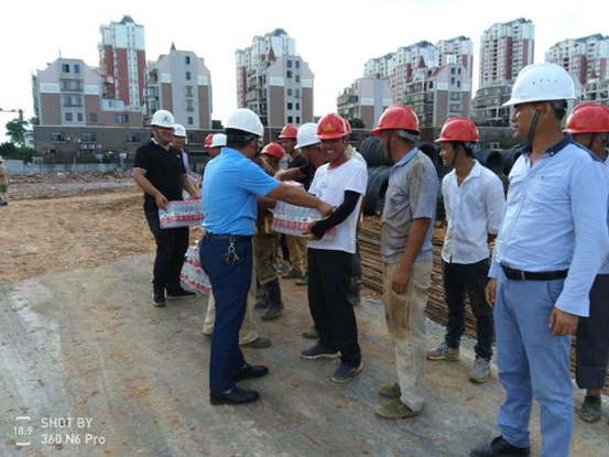 作為江西公司進(jìn)駐贛州市場(chǎng)的首個(gè)項(xiàng)目,從6月27日進(jìn)場(chǎng)施工伊始,項(xiàng)目面臨著贛州區(qū)域人工、材料、機(jī)械價(jià)格暴漲,資源緊缺,13#樓圖紙頻繁變更,圖紙進(jìn)度緩慢等重重困難。這些都是對(duì)這個(gè)90后為主的年輕項(xiàng)目團(tuán)隊(duì)的考驗(yàn)。為確保完成施工節(jié)點(diǎn),提高項(xiàng)目團(tuán)隊(duì)的凝聚力和戰(zhàn)斗力,分公司及項(xiàng)目部多措并舉全面做好防暑降溫工作。一面調(diào)整作息時(shí)間,避開(kāi)中午高溫時(shí)段,實(shí)行“抓早晚、歇中間”的避高溫措施;一面班子帶頭送清涼進(jìn)一線,項(xiàng)目部準(zhǔn)備充足的礦泉水、藿香正氣水、十滴水、清涼油等防暑降溫用品,為施工人員配備草帽、防曬服等;同時(shí)在生活、后勤等方面采取人性化服務(wù),為職工生活區(qū)安裝空調(diào),定時(shí)對(duì)職工體檢,搭設(shè)茶水臺(tái)和遮陽(yáng)棚。