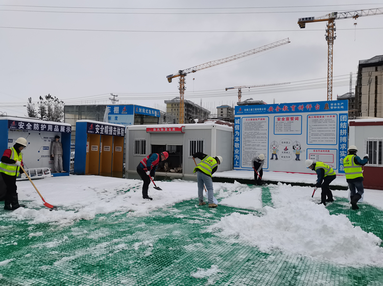 【三建雄安動(dòng)態(tài)】雄安新區(qū)容西片區(qū)安置房項(xiàng)目掃積雪保生產(chǎn)