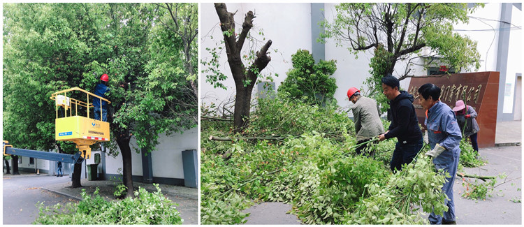 在修剪的過程中,由于樹木參差不齊,有的已經(jīng)觸碰到電線,非常危險(xiǎn),處理起來比較困難,設(shè)備租賃公司黨支部為了解決這一難題,采取應(yīng)對措施----租借升降車,工作人員利用專業(yè)油鋸在保證自身安全的情況下,對樹木進(jìn)行修剪,遇到較高、粗壯的樹枝也是一遍又一遍耐心的鋸割,大伙兒有的鋸樹枝、有的搬木頭、有的清掃垃圾……分工合作,相互配合,干的熱火朝天、忙的不亦樂乎,一個(gè)個(gè)汗流浹背。最后將修剪下來的大樹枝被及時(shí)清運(yùn),保證新基地行人車輛的安全通行。經(jīng)過一天緊張有序的工作,整個(gè)新基地的環(huán)境煥然一新。