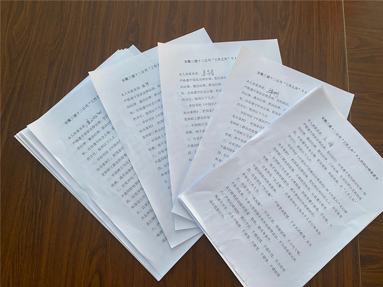 隨后,十二公司滁州時代名邸、蒙城高速、滁州高速等各項(xiàng)目部紛紛組織員工簽訂“工作之外”個人活動自律承諾書,進(jìn)一步保證項(xiàng)目部和諧穩(wěn)定的工作生活環(huán)境,自覺抵制各種不良的行為習(xí)慣。