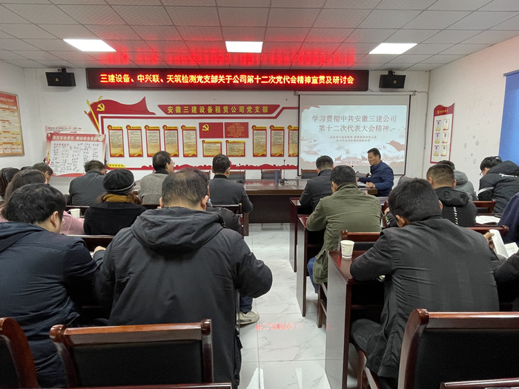 為深入學(xué)習(xí)貫徹公司第十二次黨代會精神,12月10日下午,設(shè)備租賃公司黨支部與安徽建機(jī)所屬中興聯(lián)租賃公司、天筑檢測公司黨支部聯(lián)合舉辦公司第十二次黨代會精神宣貫及研討會。三家單位共計40余人參加了學(xué)習(xí)。