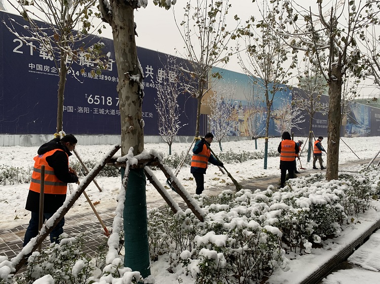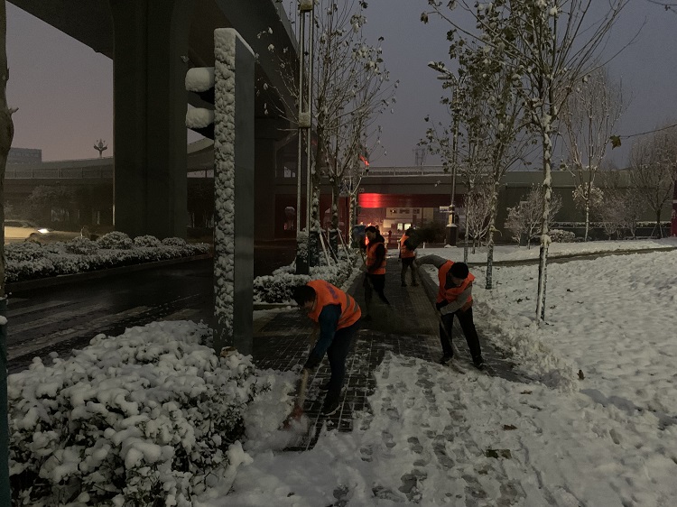 清掃積雪過程中,大家紛紛拿著鐵鍬、掃帚等除雪工具,分工合作、配合默契、干勁十足,積極投入冰雪清掃行動中,對責任路段的積雪進行了全面清理。嚴寒抵擋不住項目管理人員的熱情,他們鏟的鏟、掃的掃,忙碌的身影展現出建工人良好的精神面貌,彰顯了國企的責任與擔當。