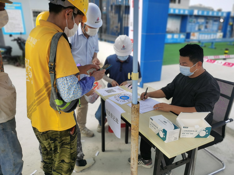 為筑牢建筑工地疫情防控安全屏障,三亞市中心城區(qū)項目項目部嚴格遵守地方政府防疫政策要求及公司部署,強化項目管理主體責任,堅決扛起“促發(fā)展、保安全”的大旗。在人員管理方面,對核酸報告、兩碼的查驗以及安全教育、防疫安全承諾書、安全試卷、安全交底等方面工作實行“一人一檔”的信息管理制度。項目根據(jù)實際情況,定期對所有人員進行核酸檢測,對檢測結果陰性人員發(fā)放帽貼。門衛(wèi)處核查兩碼、體溫、帽貼后方可允許工人進場施工。同時對生活區(qū)加強管理,生活區(qū)出入口增設立實名制門禁,并安排專人值守、監(jiān)督。把好出入關,管好風險口,加強宣傳教育,督促工人時刻做好自身健康防護。