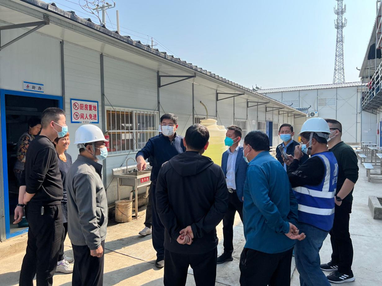 4月20日上午八點(diǎn)半蕪湖市鳩江區(qū)區(qū)委常委、常務(wù)副區(qū)長(zhǎng)戴鳴帶隊(duì)一行人至安徽省公共衛(wèi)生臨床中心(蕪湖)項(xiàng)目進(jìn)行疫情防控專項(xiàng)檢查,詳細(xì)了解項(xiàng)目規(guī)模、封閉管控人數(shù)、核酸檢測(cè)采樣情況等基本信息,認(rèn)真查看項(xiàng)目大門及生活區(qū)封閉情況,要求加強(qiáng)巡查檢查,強(qiáng)化宣傳引導(dǎo),確保人員自覺(jué)不外出、不串門、不扎堆,共同筑牢疫情防控安全防線。走進(jìn)生活區(qū)慰問(wèn)封閉管理的項(xiàng)目一線工人,仔細(xì)詢問(wèn)民工食堂物資儲(chǔ)備情況。戴區(qū)長(zhǎng)提出要高度重視物資保障工作,想盡一切辦法做好項(xiàng)目人員米、面、蔬菜等生活必需品供應(yīng),并將屬地村支部張書記介紹給項(xiàng)目,要求如有困難及時(shí)對(duì)接屬地,保障項(xiàng)目人員生活物資的正常供應(yīng)。