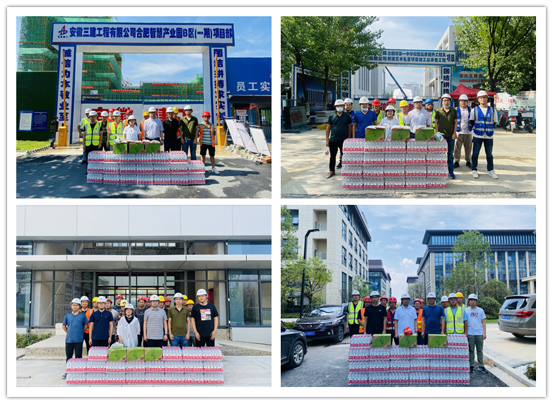 7月12日至15日,黨支部書(shū)記劉旭峰和分公司副經(jīng)理?xiàng)钚氯A、徐萍、安全科科長(zhǎng)萬(wàn)景行先后前往合肥一中瑤海校區(qū)項(xiàng)目、合肥智慧產(chǎn)業(yè)園項(xiàng)目、合肥一中改造項(xiàng)目、北城醫(yī)院項(xiàng)目、合肥市中心圖書(shū)館項(xiàng)目、工投蜀山慧谷產(chǎn)業(yè)園等項(xiàng)目現(xiàn)場(chǎng),慰問(wèn)在炎炎夏日仍堅(jiān)持作業(yè)的項(xiàng)目部一線職工,及時(shí)為他們送去了防暑降溫用品。