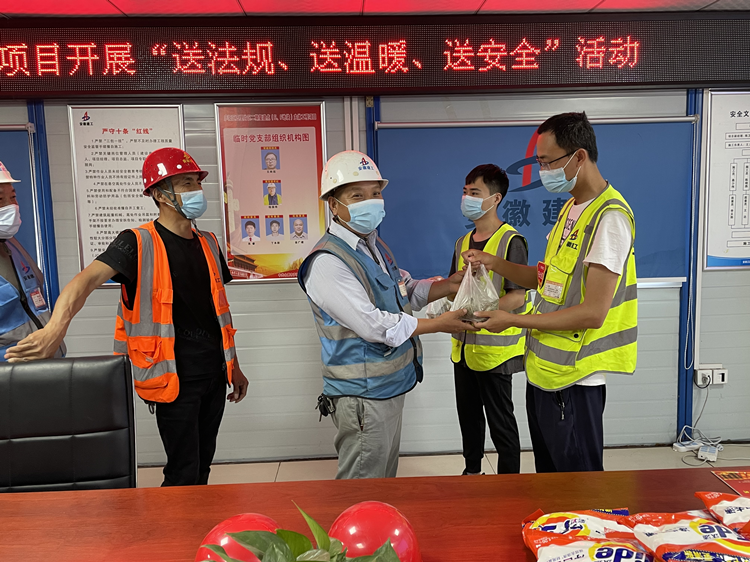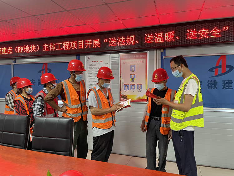 八公司五里片區(qū)二期復(fù)建點(diǎn)(E、F地塊)主體工程項(xiàng)目開(kāi)展“送法規(guī)、送溫暖、送安全”活動(dòng)