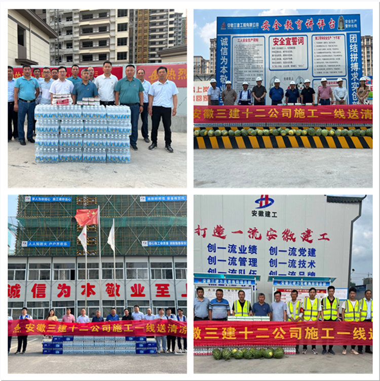 炎炎夏日送清涼,點滴關懷暖人心。為做好防暑降溫工作,確保項目一線職工安全度夏。6月20日至6月22日,十二公司先后到滁州高速項目、蒙城高速項目、渦陽高速項目和六安力高項目開展“送清涼”慰問活動,帶來了防暑降溫的西瓜、礦泉水、十滴水等清涼食品和防暑藥品,為奮戰(zhàn)在一線的工人兄弟送上一絲清涼。