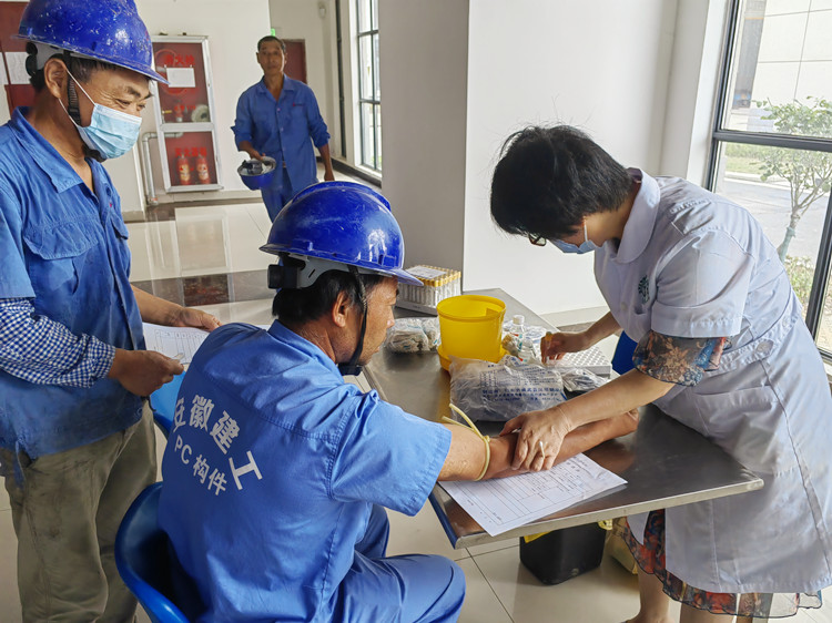 為了不耽誤生產(chǎn)工作,體檢醫(yī)護(hù)人員一早便來到臨時(shí)組建的體檢會(huì)場,以50歲為年齡界限分為兩組。體檢項(xiàng)目主要是外科檢查、血壓、血糖、血常規(guī)、心電圖等項(xiàng)目。體檢過程中,醫(yī)護(hù)人員詳細(xì)地詢問了受檢者的身體狀況、工作工種,同時(shí)對(duì)受檢者的健康咨詢給予詳細(xì)解答,提醒受檢者在夏季高溫生活飲食和工作習(xí)慣等方面的注意事項(xiàng)。工人們紛紛表示:“像我們長期在外工作的,想不起來也舍不得花錢體檢,公司可以給我們提供免費(fèi)體檢,真的是為民服務(wù)的好事!”