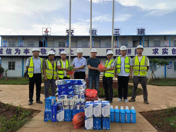 7月16日,支部委員、副經(jīng)理王慶成來到三亞市中心城區(qū)項目,對酷暑天氣仍堅守施工崗位的現(xiàn)場作業(yè)人員表示感謝,為他們送上西瓜、洗衣液、毛巾、藿香正氣水、風(fēng)油精等防暑降溫物品,給在高溫天氣辛勤工作的現(xiàn)場作業(yè)人員帶來“清涼”問候。
