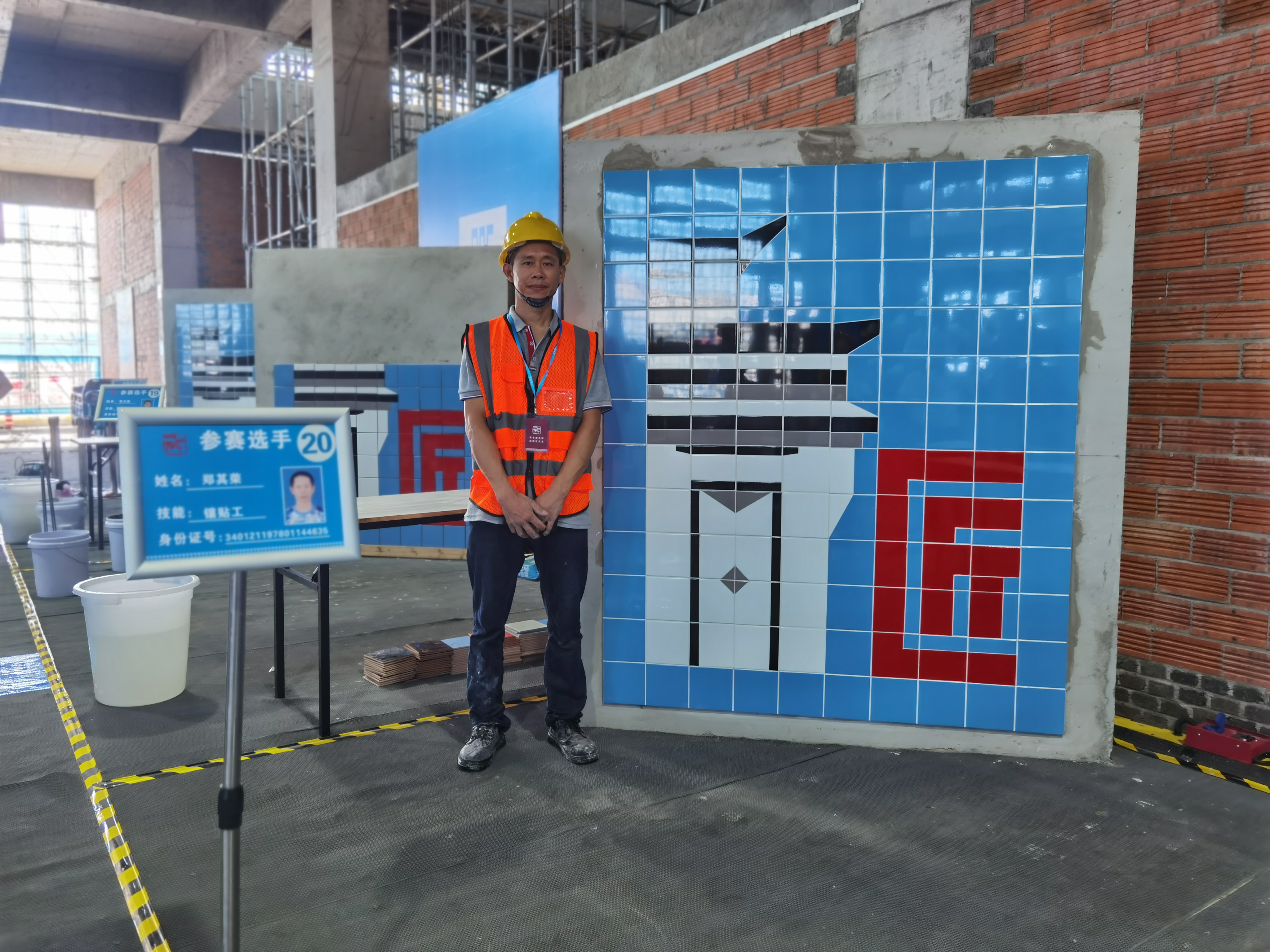 本次大賽有來自全省各個地市、中央駐皖單位、省屬企業(yè)的22名鑲貼工選手代表參賽。競賽通過理論考試和實操比賽進行綜合評比,是對選手理論知識、鑲貼實操等各項技能的全面考驗。通過5個多小時的緊張激烈角逐,我公司代表隊選手鄭其榮取得第五名的好成績。