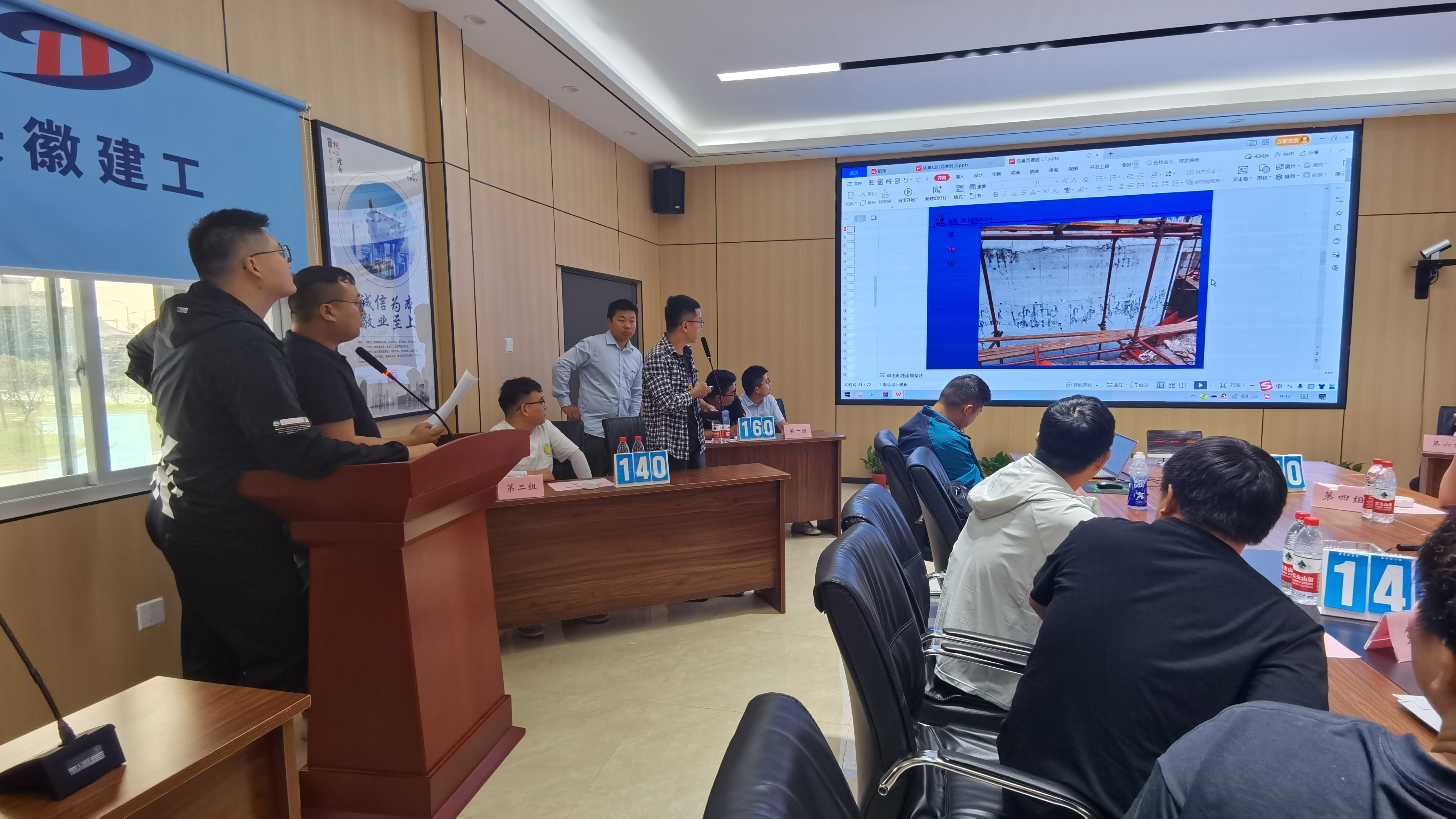 此次活動(dòng)以“推動(dòng)質(zhì)量變革創(chuàng)新,促進(jìn)質(zhì)量強(qiáng)國建設(shè)”為主題,圍繞項(xiàng)目技術(shù)質(zhì)量管理方面,采用輪答題及搶答題的方式競出比分排名。參賽選手共計(jì)7組,由水利交通公司領(lǐng)導(dǎo)班子成員擔(dān)任評(píng)委,項(xiàng)目部其余管理人員現(xiàn)場觀賽。