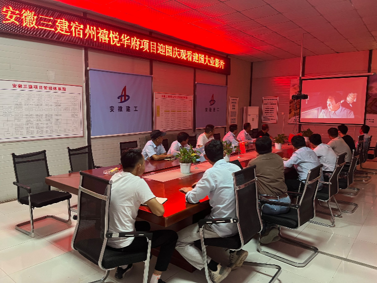為慶祝祖國母親73歲生日,引導(dǎo)項目全體職工努力奮進(jìn)、積極踐行社會主義核心價值觀,9月30日晚,宿州禧悅?cè)A府二期項目組織觀看了紅色愛國教育影片《建國大業(yè)》。