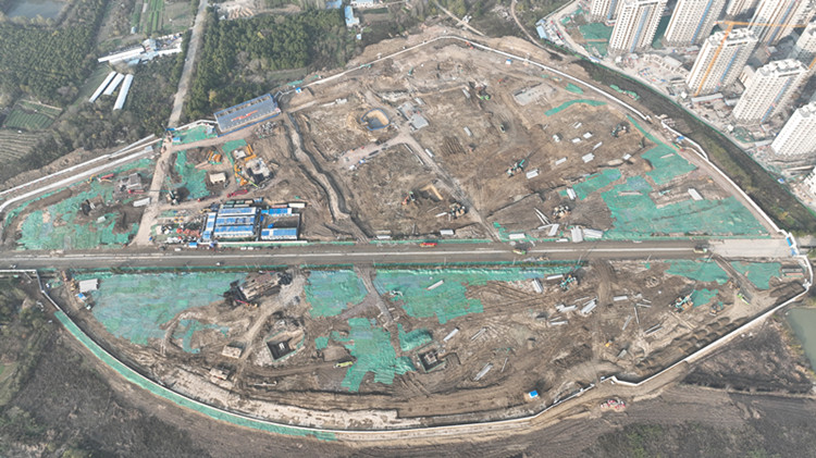 生產(chǎn)方面,現(xiàn)場(chǎng)科學(xué)謀劃,因現(xiàn)狀道路蘭渡路位于項(xiàng)目紅線內(nèi),將項(xiàng)目用地分為南北兩塊區(qū)域,137路公交車通行路線仍途經(jīng)蘭渡路,對(duì)項(xiàng)目整體進(jìn)度造成了極大影響。項(xiàng)目召開(kāi)專題研討會(huì),決定兵分兩路,一方面積極與大建辦、交管部門、公交集團(tuán)協(xié)調(diào)溝通,盡快完成蘭渡路道改封閉事宜;另一方面,考慮施工現(xiàn)場(chǎng)不具備大面施工條件,項(xiàng)目謀劃永臨結(jié)合作業(yè),充分利用現(xiàn)有場(chǎng)地條件,將室外永久圍墻及室外永久道路提前謀劃施工,在前期取得了顯著成效。在關(guān)鎮(zhèn)村155畝場(chǎng)地移交后,項(xiàng)目整體具備大面施工條件,在一天之內(nèi)完成關(guān)鎮(zhèn)區(qū)域所有清表工作。