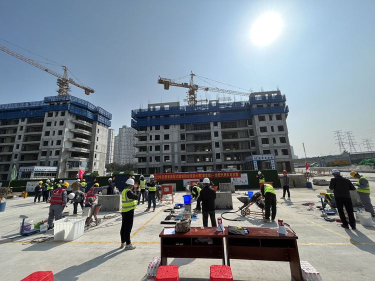 安徽省裝配式職業(yè)技能大賽(灌漿組)合肥代表隊賽前對抗賽在合肥濱湖科學(xué)城BK202108地塊項目舉辦