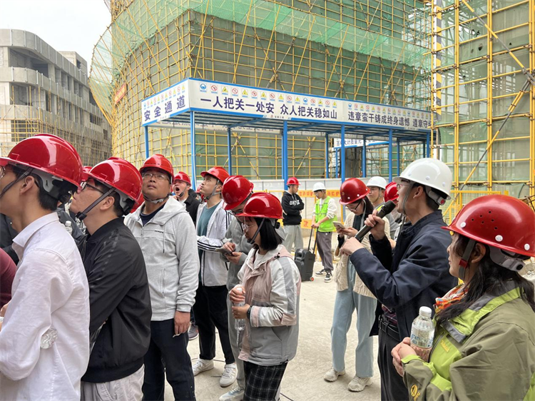 緊接著,項(xiàng)目管理人員帶領(lǐng)同學(xué)們走進(jìn)施工現(xiàn)場(chǎng)進(jìn)行實(shí)地了解,為大家講解項(xiàng)目重難點(diǎn)施工過程和項(xiàng)目亮點(diǎn),大家切身感受著現(xiàn)場(chǎng)的施工氛圍和各崗位間的密切配合,對(duì)自己的未來職業(yè)規(guī)劃有了更加明確的認(rèn)知。之后,項(xiàng)目管理人員與師生開展了友好交流,鼓勵(lì)同學(xué)們好好學(xué)習(xí)土木工程專業(yè)知識(shí),了解建筑工程前沿技術(shù),畢業(yè)后努力為祖國(guó)基建事業(yè)做出貢獻(xiàn)!