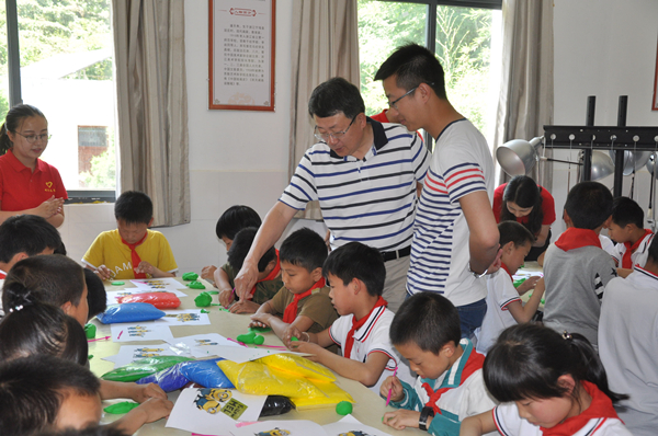 活動中,兩公司青年團員分組分別與不同年紀的小學生,開展繪畫、唱歌、手工制作以及手語伴唱等互動活動。隨后,該校少先隊員向參加活動的青年團員以及企業(yè)黨團負責人贈送紅領(lǐng)巾?;顒臃諊p松,受到校方師生一致歡迎。活動中五公司皖投·天下明珠項目管理人員還為該校捐贈一臺音響設(shè)備及150根跳繩,希望孩子們多強身健體。