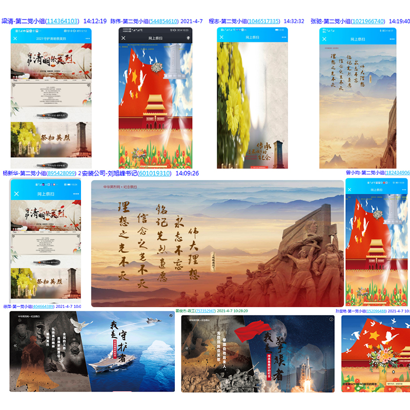 梨花風(fēng)起,又至清明。為更好地緬懷革命英烈、傳承紅色基因,把開展黨史學(xué)習(xí)教育同弘揚(yáng)傳統(tǒng)文化結(jié)合起來,全面貫徹習(xí)近平總書記黨史學(xué)習(xí)教育動員大會重要講話精神。安徽三建公司工程研究院、安裝公司、建筑工業(yè)公司等多個基層黨支部紛紛開展“清明祭英烈”線上祭掃活動,引導(dǎo)全體黨員干部弘揚(yáng)英烈精神,銘記光輝歷史,接受精神洗禮,牢記初心使命。各支部黨員踴躍參與。