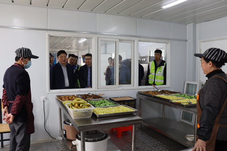 調(diào)研中,何洪春一行深入施工現(xiàn)場、員工宿舍和員工食堂,實(shí)地察看了施工進(jìn)度,與員工親切交談,了解員工工作及后勤保障情況。在施工現(xiàn)場何洪春要求,一定要關(guān)愛一線員工的生活,努力創(chuàng)造好的生活環(huán)境,做好后勤保障工作,為施工生產(chǎn)有效推進(jìn)奠定堅(jiān)實(shí)的基礎(chǔ)保障。