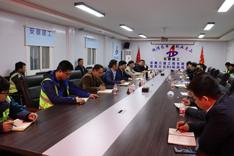 在認(rèn)真察看項(xiàng)目現(xiàn)場后,何洪春在項(xiàng)目部組織召開了座談會(huì)。會(huì)上,何洪春對(duì)項(xiàng)目取得階段性成果表示肯定,并對(duì)施工、安全生產(chǎn)及現(xiàn)場需要解決的重難點(diǎn)問題提出具體意見建議。就項(xiàng)目管理及雄安分公司近期工作,何洪春提出四點(diǎn)要求:一是各參建單位要統(tǒng)一戰(zhàn)線,統(tǒng)一“一盤棋”思想,要快動(dòng)作、高標(biāo)準(zhǔn)、嚴(yán)要求,不打折扣推進(jìn)工作;二是各工區(qū)、各參戰(zhàn)人員要提高站位、主動(dòng)作為、加強(qiáng)溝通、勇于承擔(dān)、發(fā)揚(yáng)安徽建工“特別能吃苦、特別能戰(zhàn)斗”企業(yè)作風(fēng),克服困難,保障施工;三是項(xiàng)目管理要做好“五好措施”,暨計(jì)劃編制好、資源配置好、組織協(xié)調(diào)好、督促檢查好、服務(wù)保障好;四是雄安分公司要抓住機(jī)遇豎品牌、履約工程抓市場,繼往開來,共創(chuàng)輝煌。